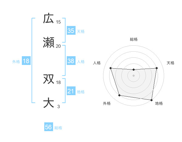 広瀬 双大さんの総格は56画の1点!