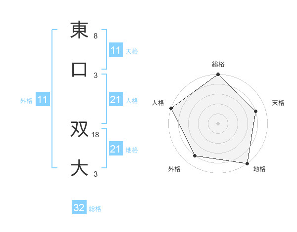 東口 双大さんの地格は21画の5点!