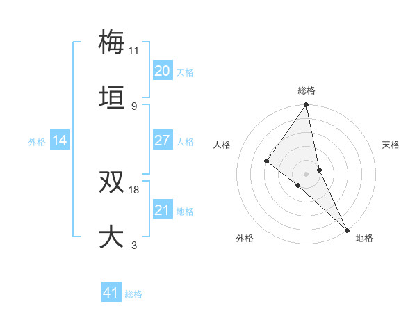 梅垣 双大さんの総格は41画の5点!
