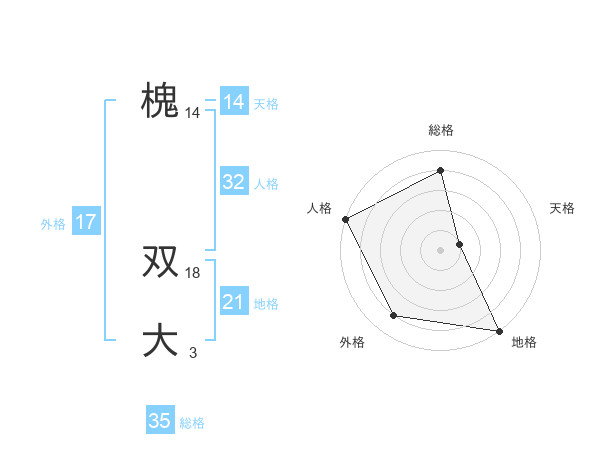 槐 双大さんの総格は35画の4点!