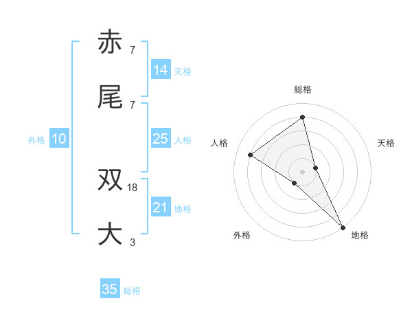 赤尾 双大さんを姓名の画数から五運を鑑定