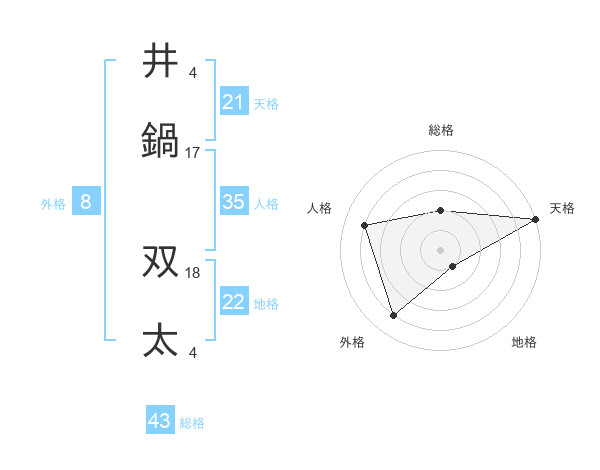 井鍋 双太さんの天格は21画の5点!