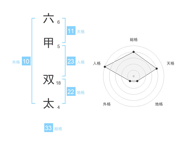六甲 双太さんの総格は33画の4点!