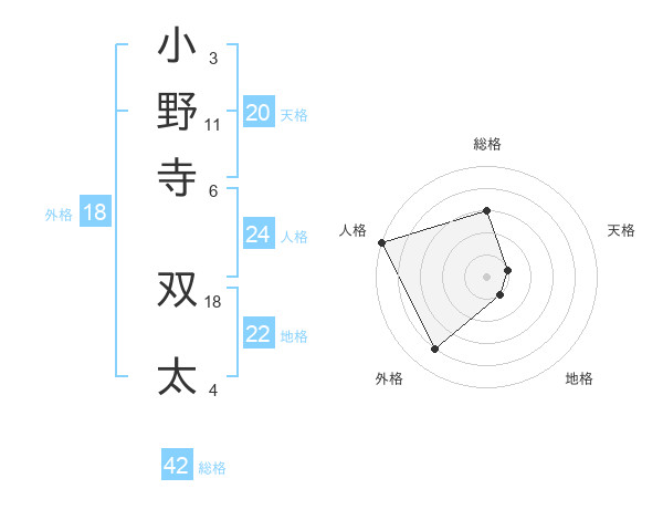 小野寺 双太さんの総格は42画の3点!