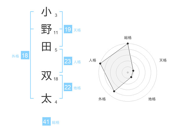 小野田 双太さんの総格は41画の5点!