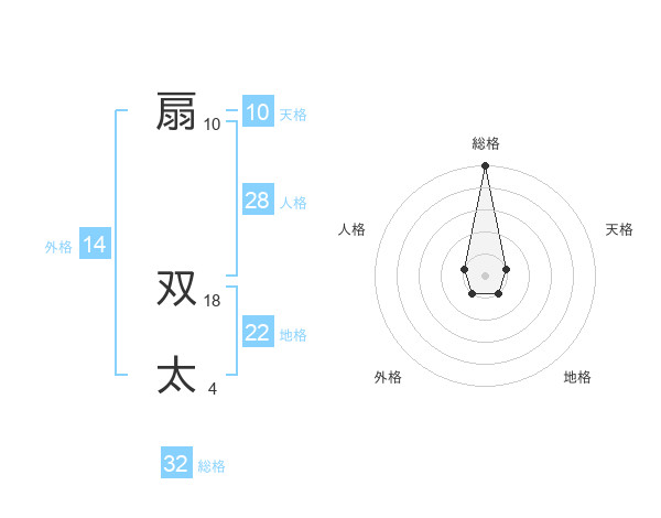 扇 双太さんの総格は32画の5点!
