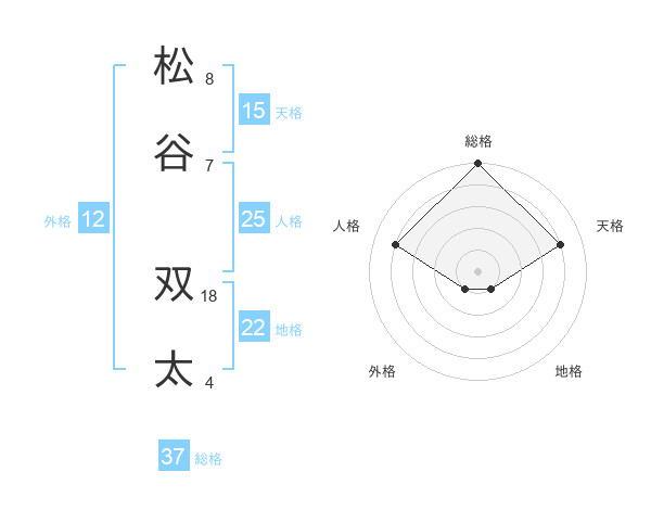 松谷 双太さんの総格は37画の5点!