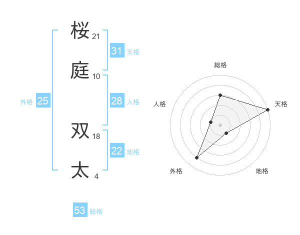 桜庭 双太さんの総格は53画の3点!