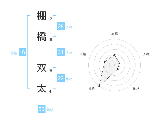棚橋 双太さんを姓名の画数から五運を鑑定