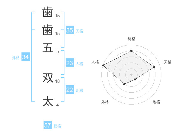 歯歯五 双太さんを姓名の画数から五運を鑑定