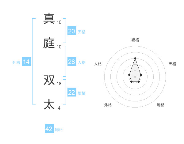 真庭 双太さんの総格は42画の3点!