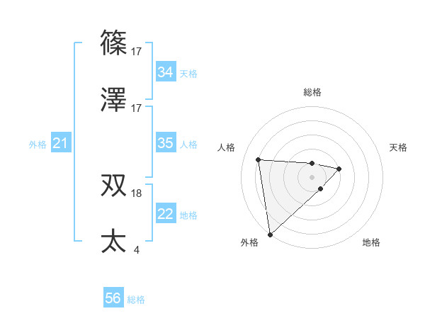 篠澤 双太さんの天格は34画の2点!