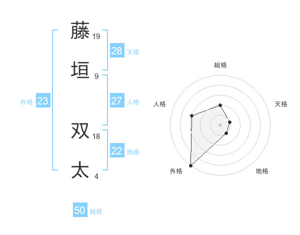 藤垣 双太さんの総格は50画の2点!