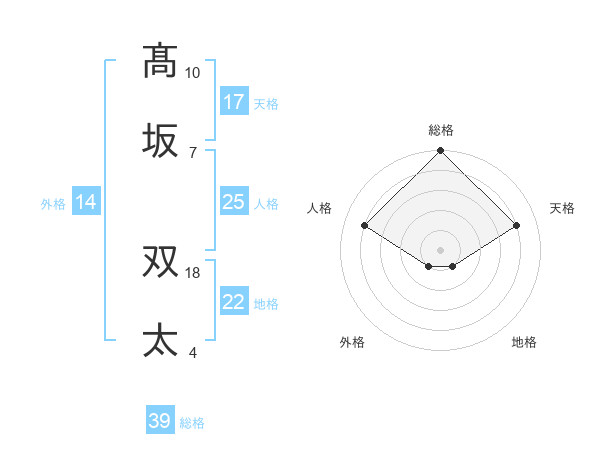 髙坂 双太さんを姓名の画数から五運を鑑定