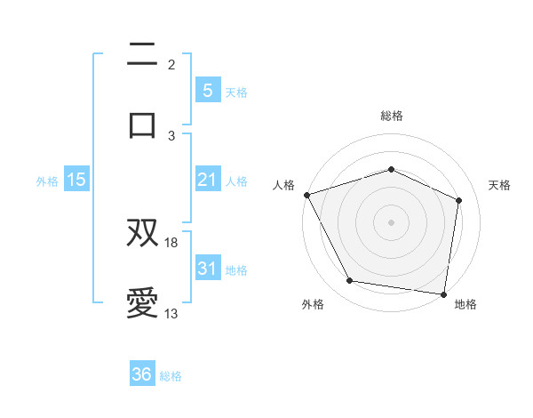 二口 双愛さんの地格は31画の5点!