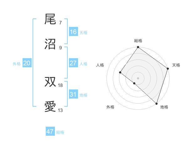 尾沼 双愛さんを姓名の画数から五運を鑑定