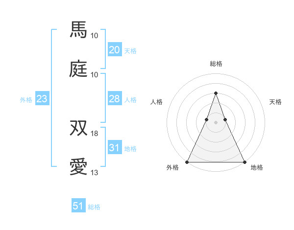 馬庭 双愛さんを姓名の画数から五運を鑑定