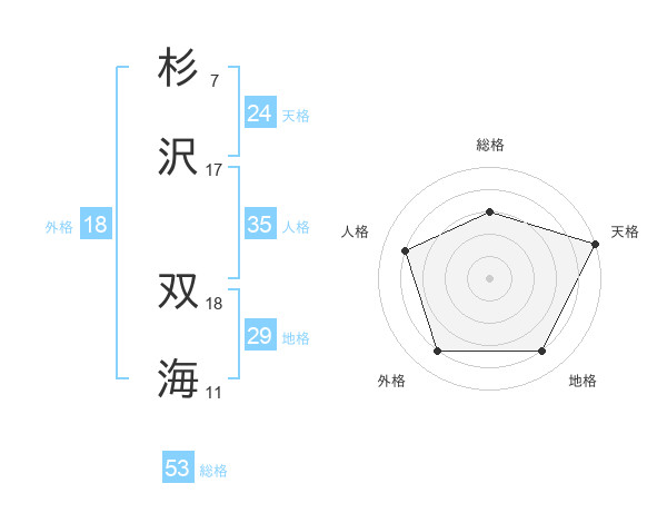 杉沢 双海さんを姓名の画数から五運を鑑定