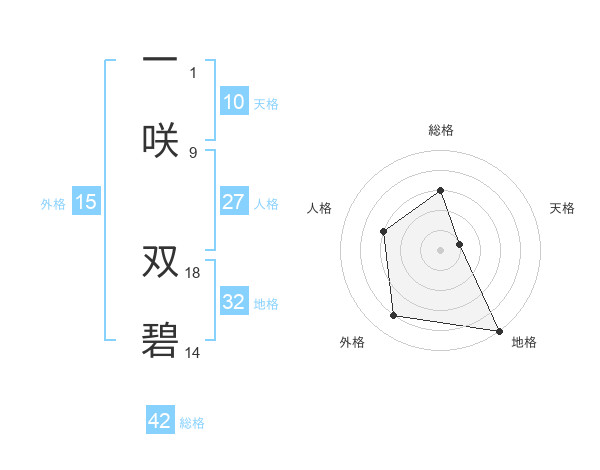 一咲 双碧さんを姓名の画数から五運を鑑定
