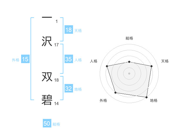 一沢 双碧さんの総格は50画の2点!