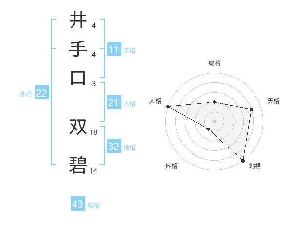 井手口 双碧さんの総格は43画の2点!