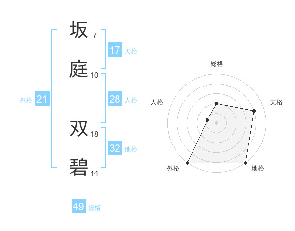 坂庭 双碧さんの外格は21画の5点!