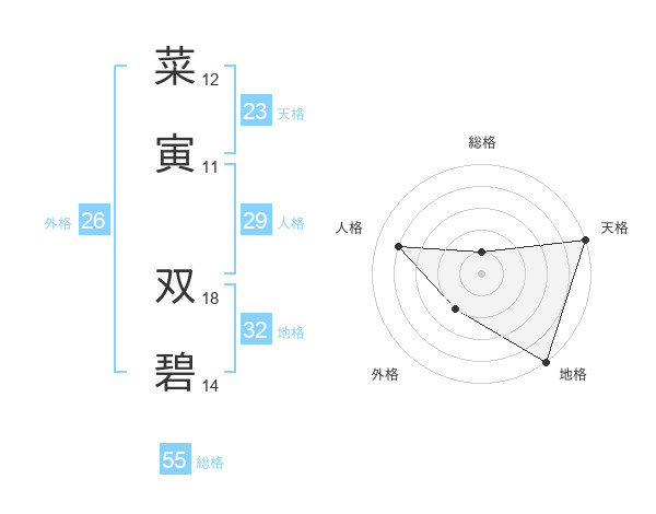 菜寅 双碧さんの天格は23画の5点!