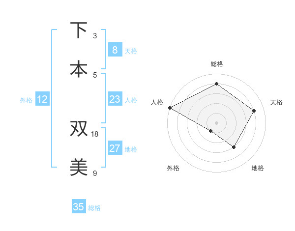 下本 双美さんの総格は35画の4点!