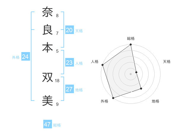 奈良本 双美さんの総格は47画の5点!