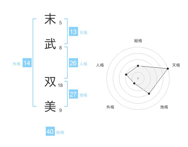 末武 双美さんの天格は13画の5点!