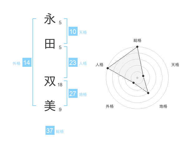 永田 双美さんの総格は37画の5点!