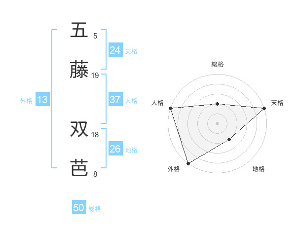 五藤 双芭さんの総格は50画の2点!