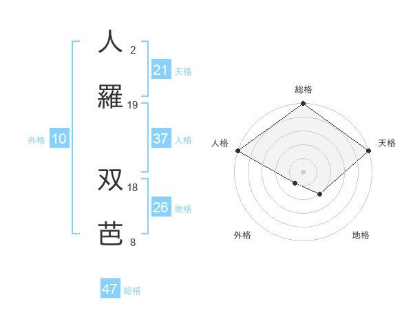 人羅 双芭さんを姓名の画数から五運を鑑定