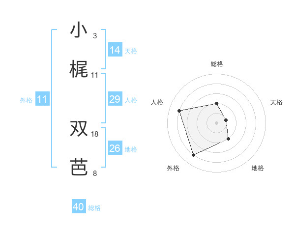 小梶 双芭さんの総格は40画の2点!