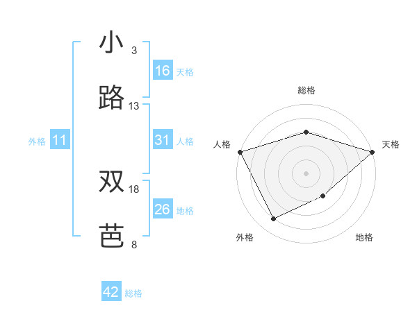小路 双芭さんの天格は16画の5点!
