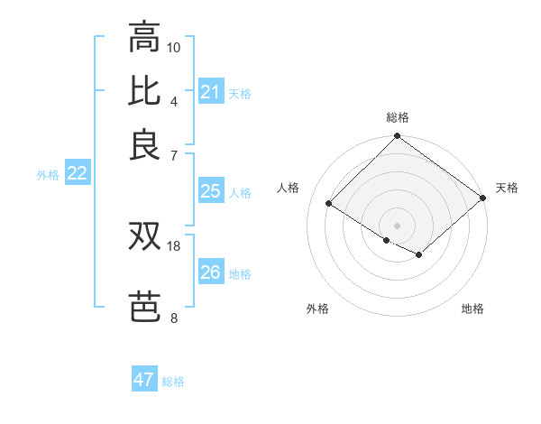 高比良 双芭さんを姓名の画数から五運を鑑定