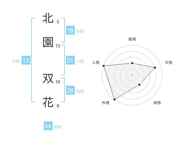 北園 双花さんの外格は13画の5点!