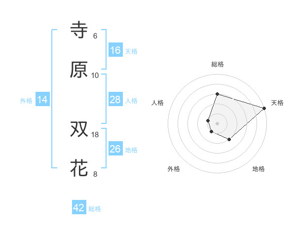 寺原 双花さんの天格は16画の5点!
