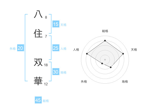 八住 双華さんの天格は15画の4点!