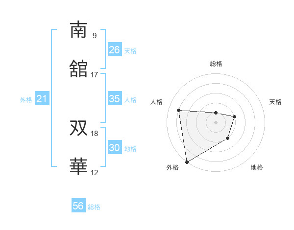 南舘 双華さんの外格は21画の5点!