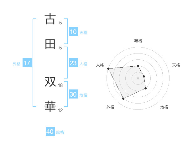 古田 双華さんを姓名の画数から五運を鑑定