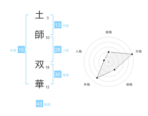 土師 双華さんの天格は13画の5点!