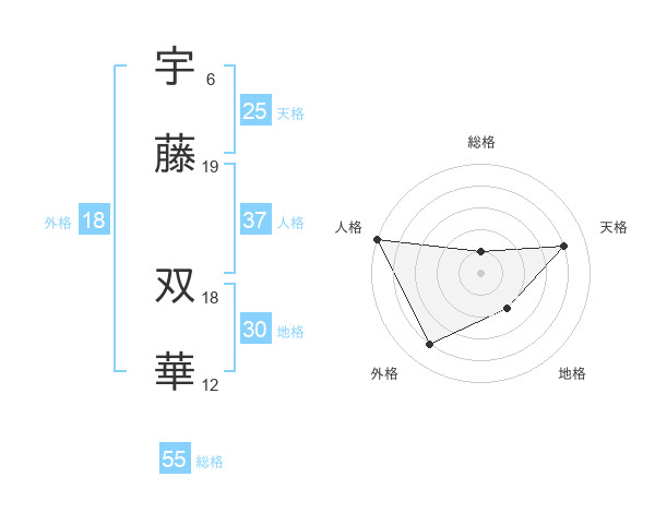 宇藤 双華さんの総格は55画の1点!