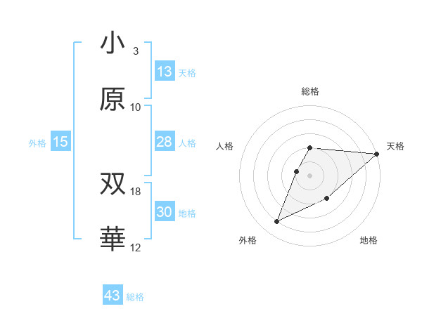小原 双華さんの天格は13画の5点!