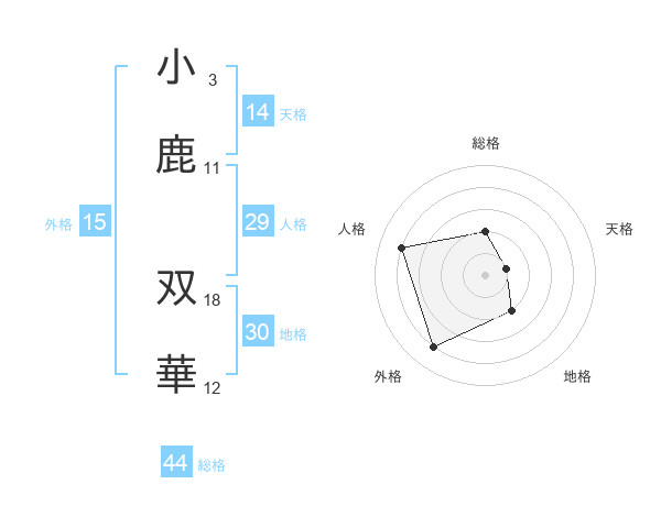 小鹿 双華さんを姓名の画数から五運を鑑定