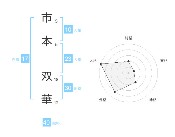 市本 双華さんの外格は17画の4点!