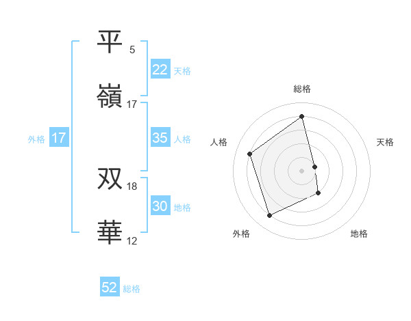 平嶺 双華さんの総格は52画の4点!