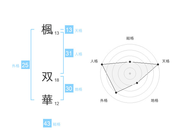 楓 双華さんの天格は13画の5点!