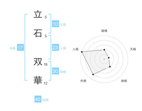 立石 双華さんの外格は17画の4点!