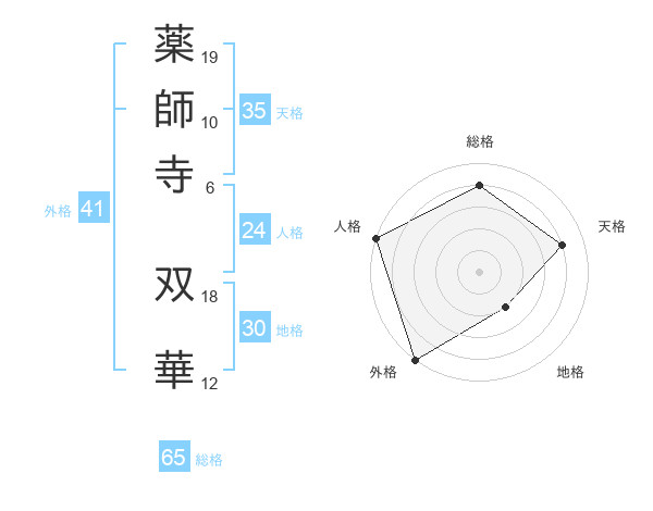 薬師寺 双華さんの総格は65画の4点!